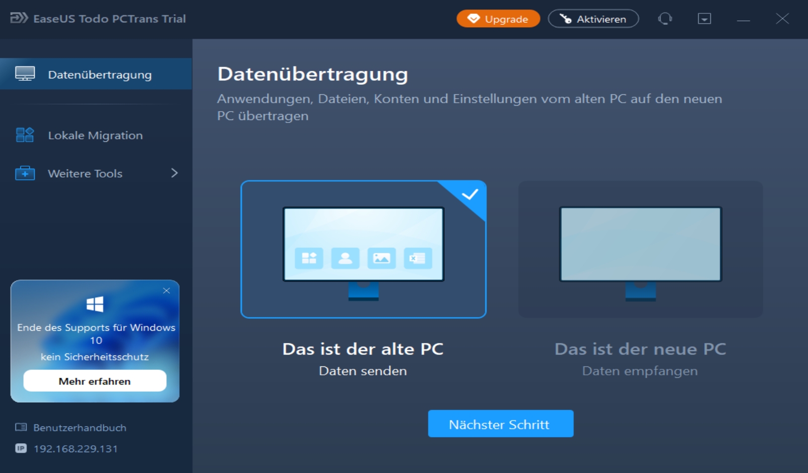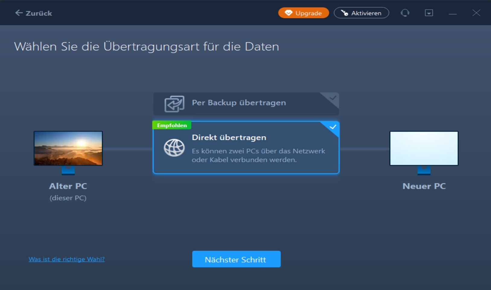 Direkter PC-zu-PC-Transfer von Programmen, Dateien und Benutzerkonten