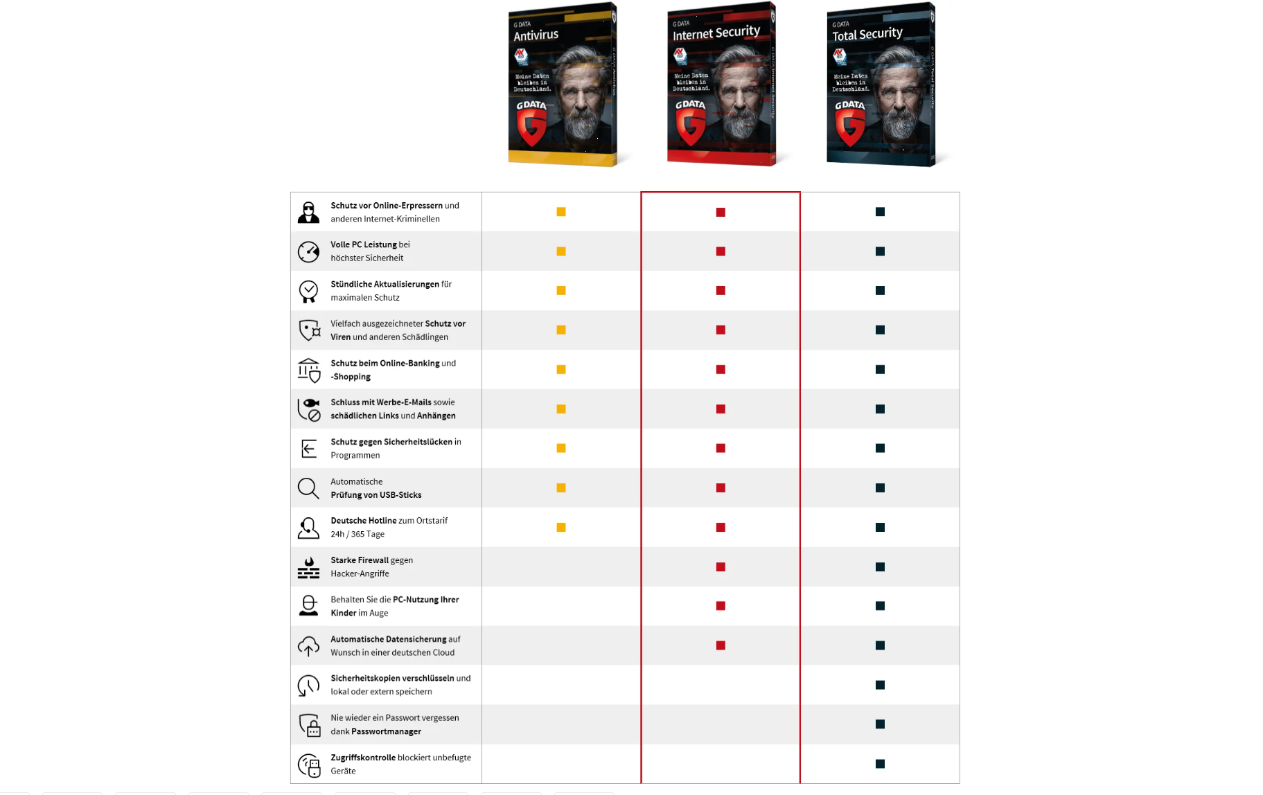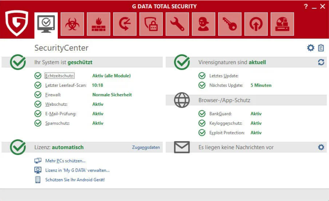 Wer die komplette Bandbreite will, greift zur G Data Total Security Vollversion und aktiviert sie mit dem G Data Total Security Produktschlüssel. Möchten Sie G Data Total Security kaufen, profitieren Sie von nahtloser Bedienung und klaren Dialogen. Außerdem erhalten Sie regelmäßige Verbesserungen, die neue Schutzfunktionen bringen. Damit wächst die Lösung mit Ihren Bedürfnissen – komfortabel, effizient und zukunftssicher.